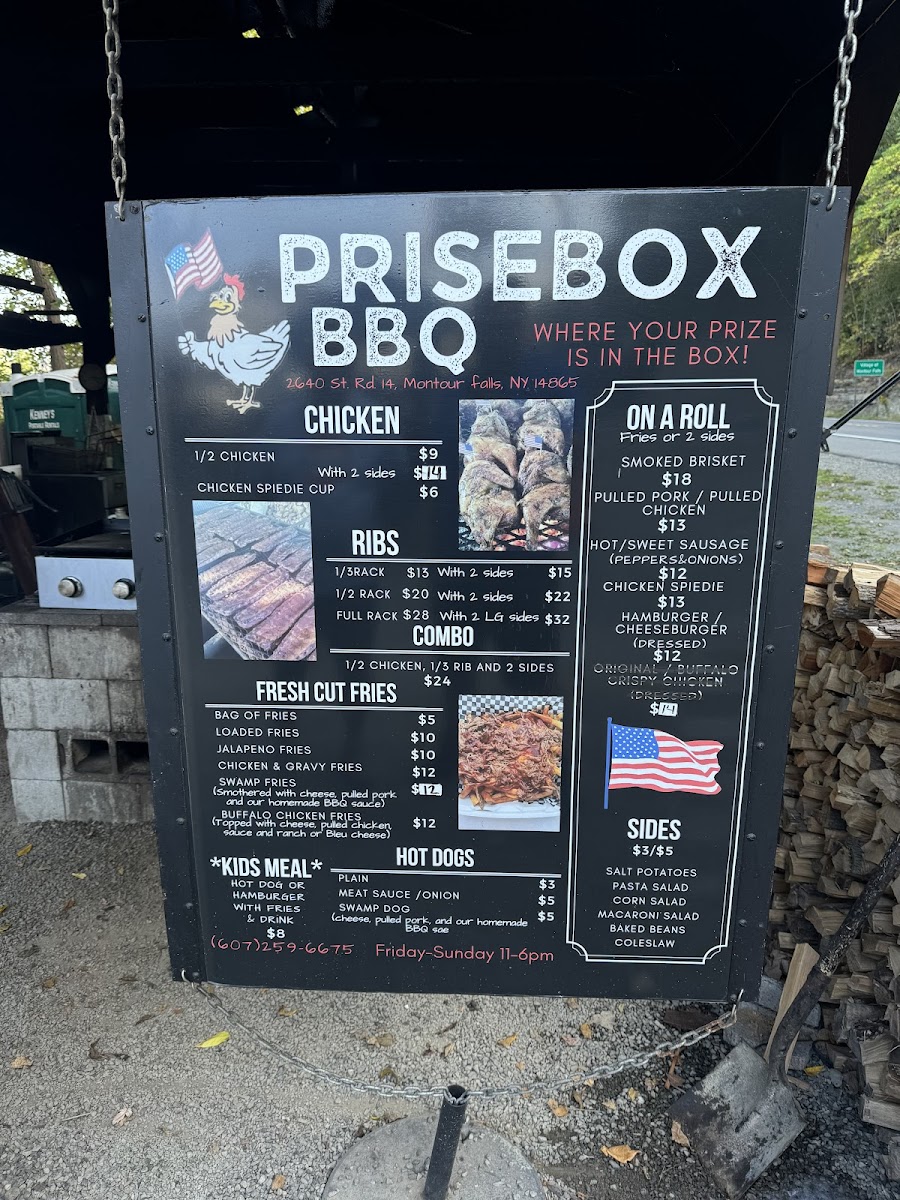 Located in the charming Watkins Glen, NY, PriseBox BBQ offers a tantalizing menu that celebrates the true essence of barbecue. Guests rave about the pulled pork on a bun, praised for its moist texture and delectable homemade BBQ sauce. The brisket sandwich special with crispy fries stands out, delivering a hearty and flavorful experience that patrons can’t get enough of.